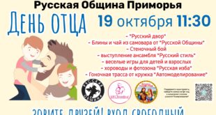 19 октября, начало в 11:30. Храм Новомучеников и Исповедников Церкви Русской (г. Владивосток, ул. Шуйская, 23, строение 2, район Автовокзала, за магазином «Реми»). В программе праздника «Русский двор» от Общины Приморья. · Традиционные угощения: Согреемся горячим чаем из настоящего самовара и угостимся вкусными блинами от Русской Общины. · Старинные забавы: Померимся силой в стеночном бою, поводим хороводы и поиграем в ...