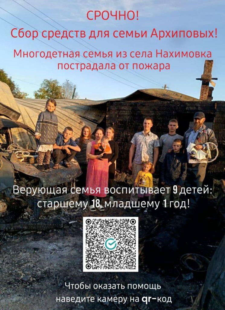 Каждый вклад важен! Давайте вместе проявим милосердие и деятельную любовь, поддержав семью Архиповых в беде.