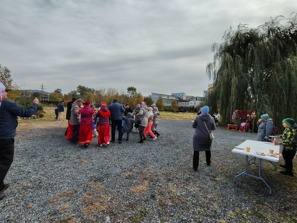 На улице царил дух настоящего русского фестиваля. Гости могли помериться силой в перетягивании каната, гиревом спорте, освоить ходули и столбоступы, сыграть в городки. Особой популярностью пользовалось угощение — настоящие русские блины со сметаной и вареньем, а также ароматный чай из самовара. Праздник поддержала пекарня «Бушковский Хлеб», угостившая гостей хлебом, приготовленным на живой закваске. Многие участники отмечали его невероятный вкус и аромат, что стало приятным дополнением к праздничному столу.