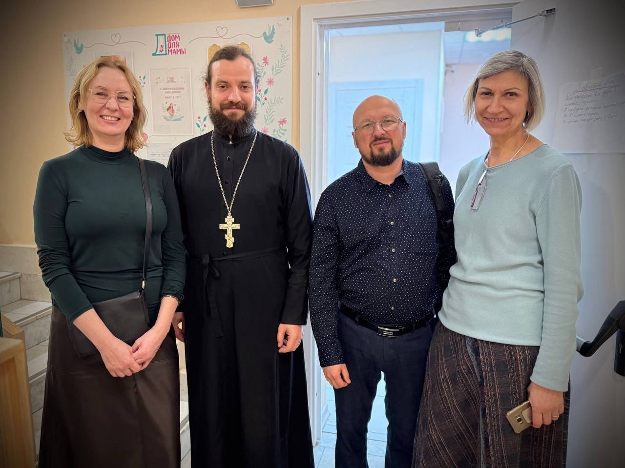Затем отец Владимир познакомился с организаторами проекта «Возвращение», которые помогают купить билеты на поезд или самолет желающим вернуться на родину, но не имеющим для этого финансовых средств. После экскурсант посетил «Дом для мамочек». Данная организация предоставляет кров и питание для мам с детьми, помогая им проходить сложные жизненные периоды.