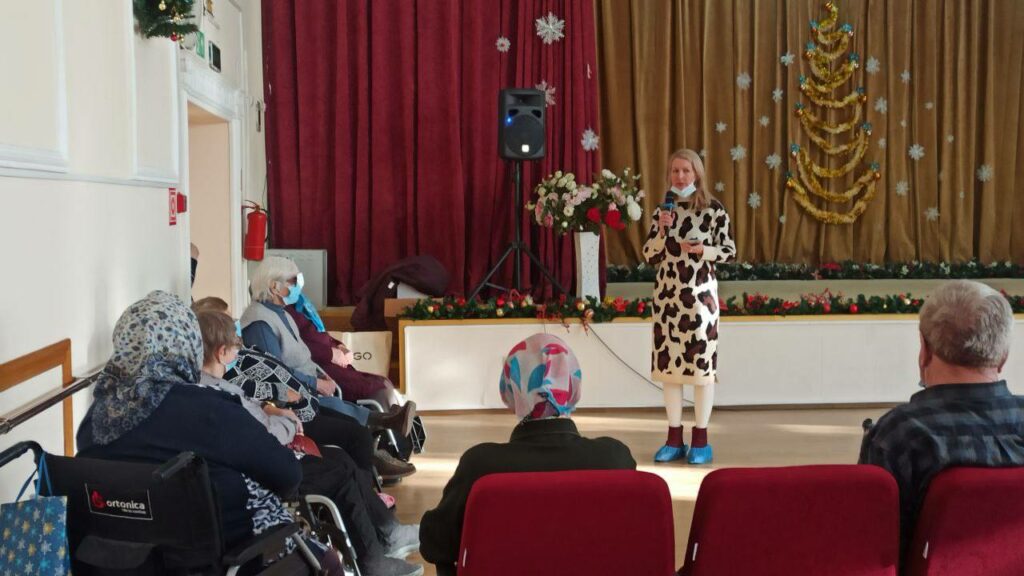 18 декабря по благословению иерея Владимира Ковальчука, руководителя отдела по благотворительности и социальному служению Владивостокской епархии, сотрудники отдела Виктория Дорохина и Ольга Кушнер поздравили персонал и подопечных Седанкинского дома-интерната для престарелых людей и инвалидов с днём памяти свт. Николая Чудотворца. Встреча прошла в актовом зале, который уже нарядно украшен к новогодним праздникам.