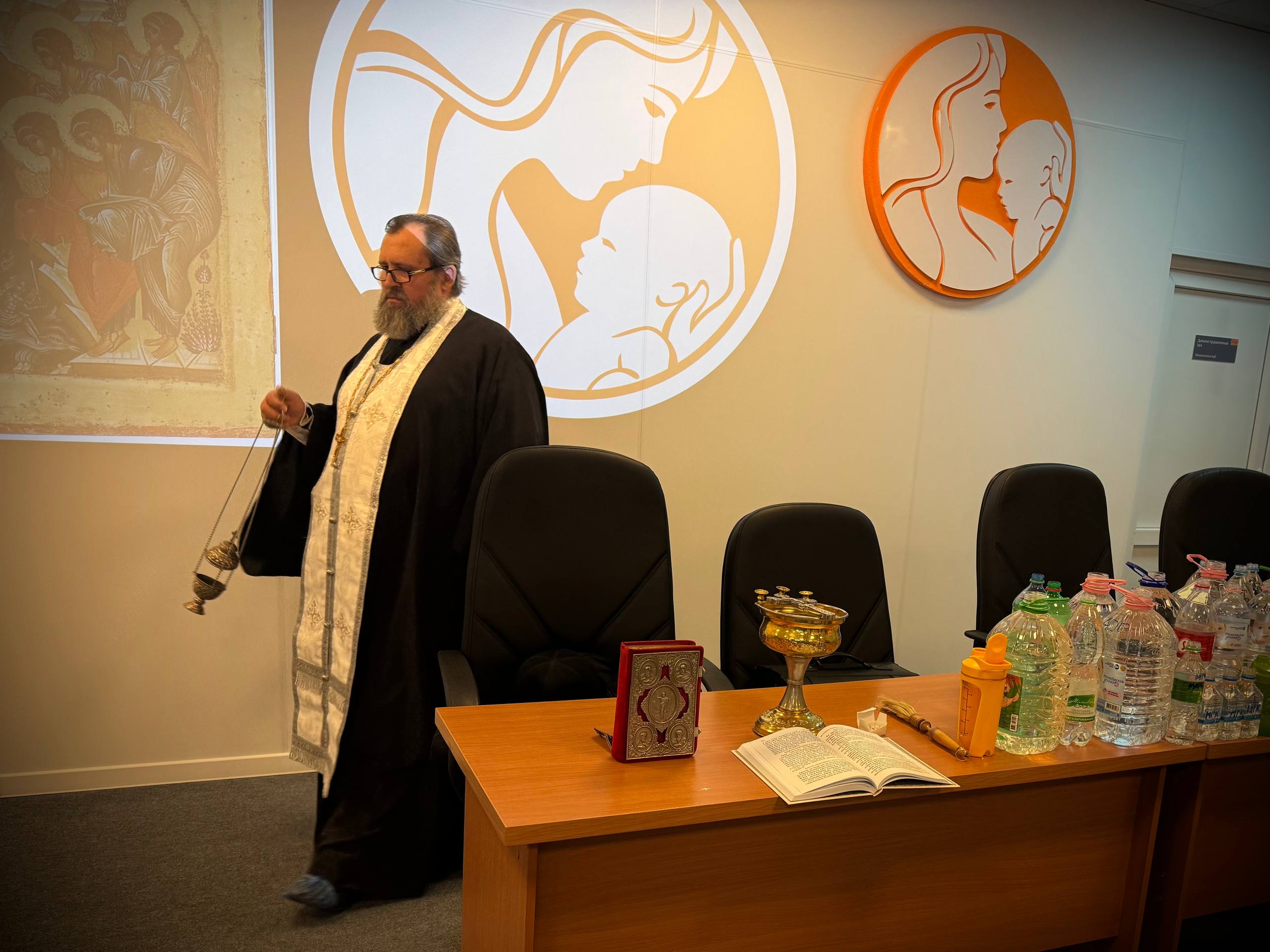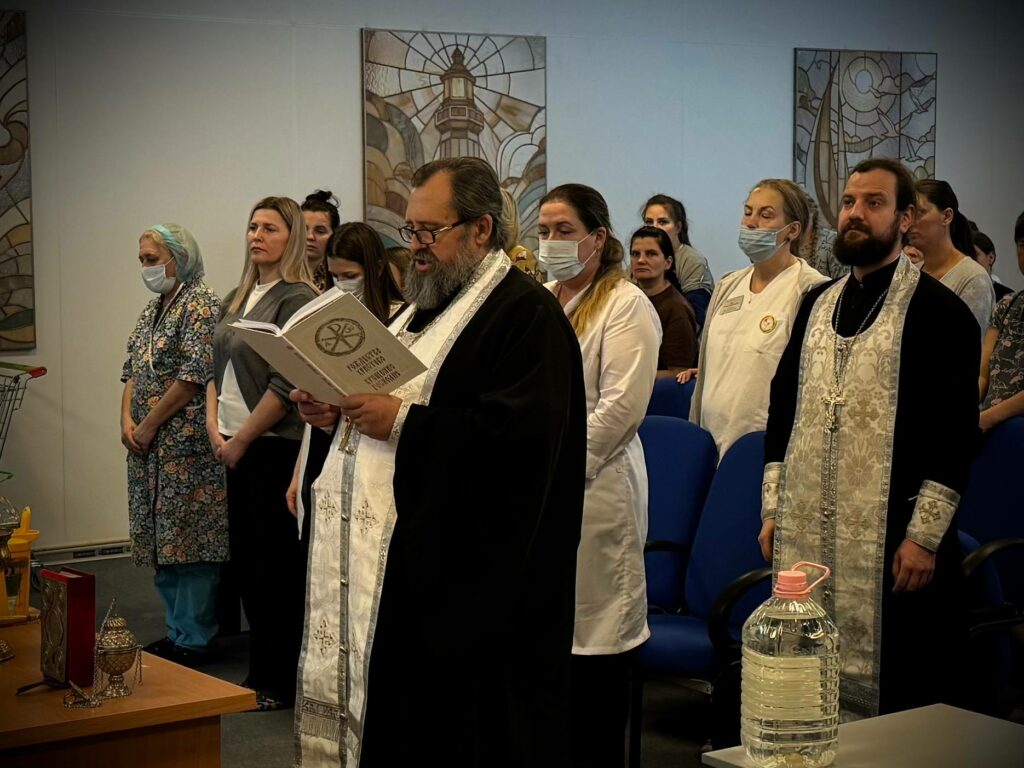 По завершении молебна руководитель отдела по благотворительности и социальному служению иерей Владимир Ковальчук поздравил всех медицинских работников и лично главного врача центра Татьяну Юрьевну Курлееву с великим православным праздником. Отец Владимир пожелал коллективу центра благополучия, крепкого здоровья, терпения и Божьей помощи в их важнейшем труде — сохранении жизни и здоровья матерей и младенцев. К поздравлениям присоединилась и Виктория Дорохина. Она рассказала о помощи мамочкам, которую оказывает АНО «Колыбель».