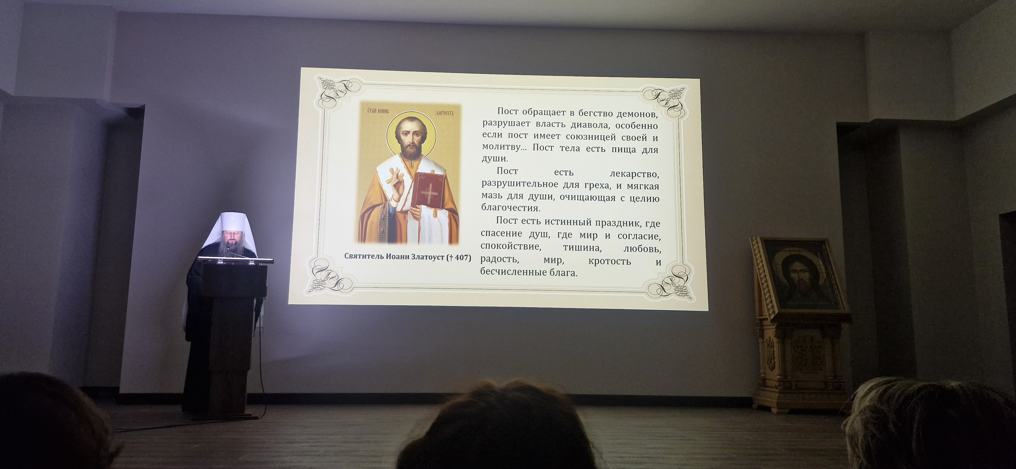 Архиерейский хор под управлением Елены Кохановской исполнил великопостные песнопения. А митрополит Павел подробно объяснил смысл каждого произведения.