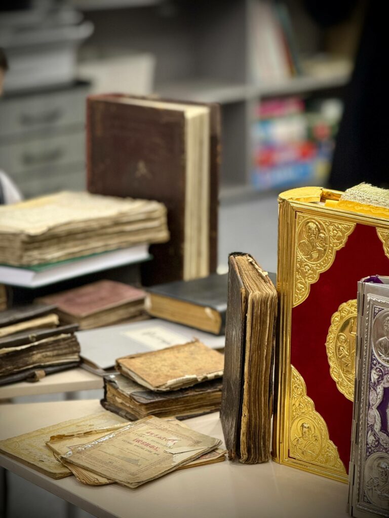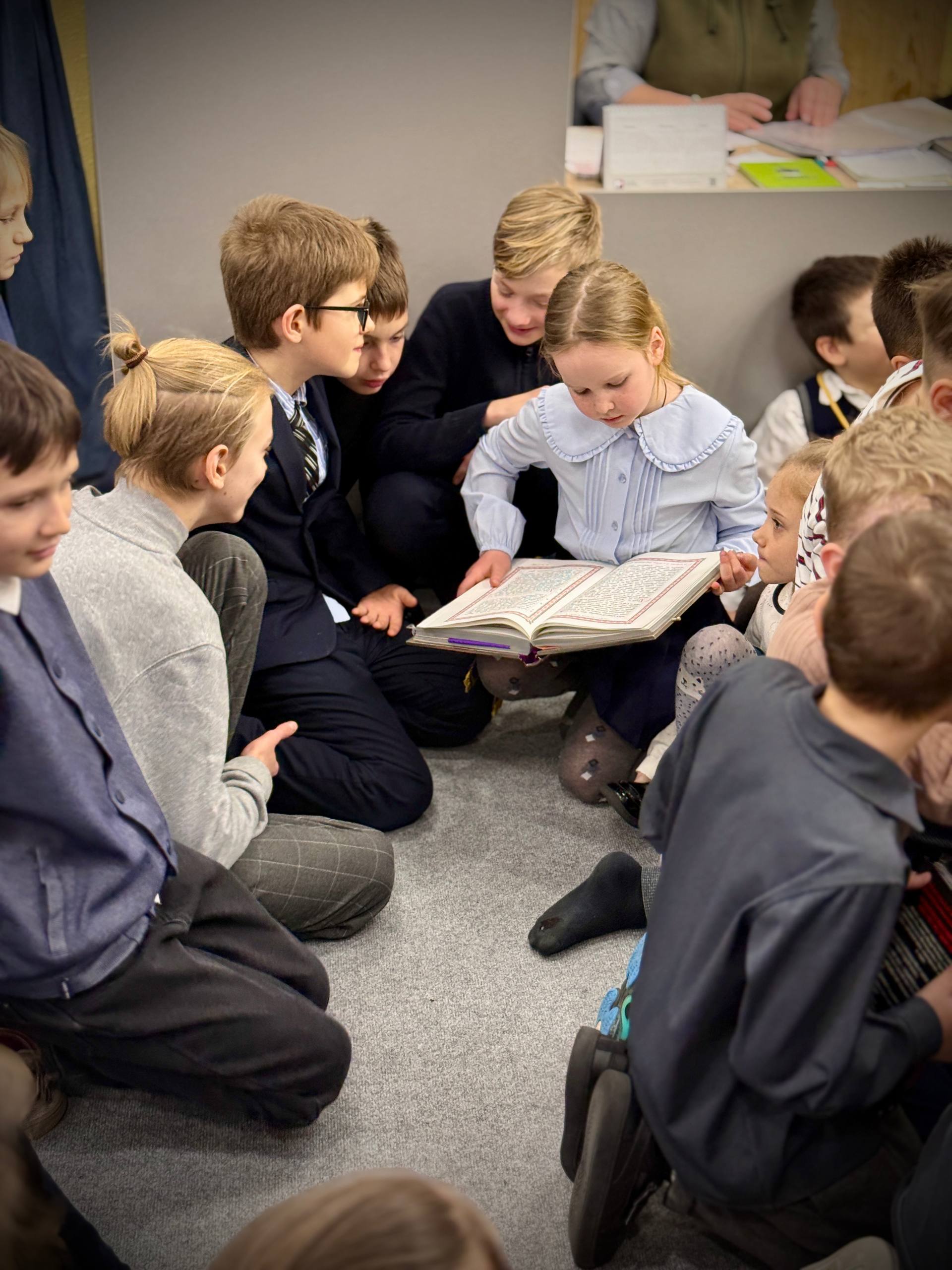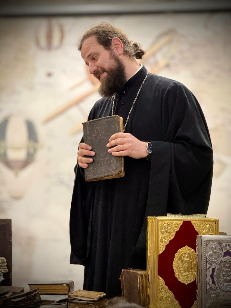 Школьники с большим интересом слушали рассказ отца Владимира. Живой отклик у ребят вызвала возможность увидеть и обсудить, как выглядели древние книги, чем они отличаются от современных изданий и какую мудрость они в себе хранят.