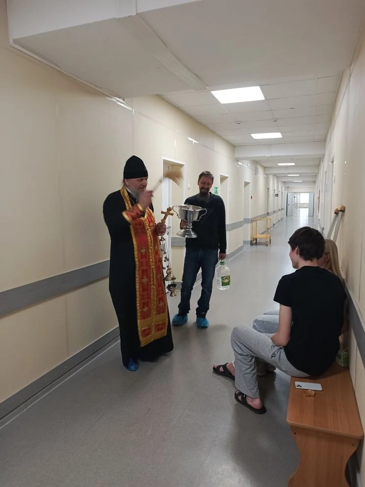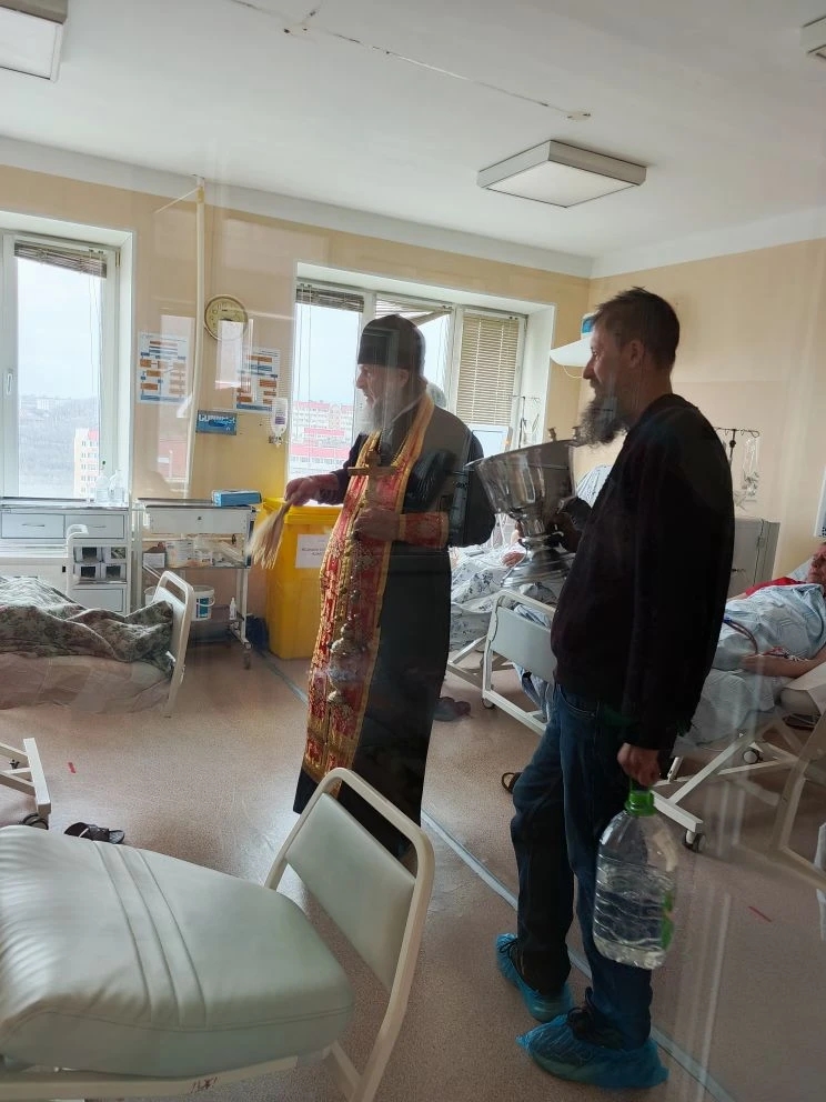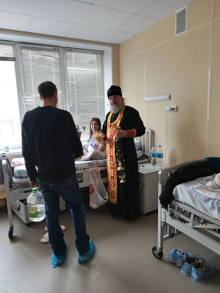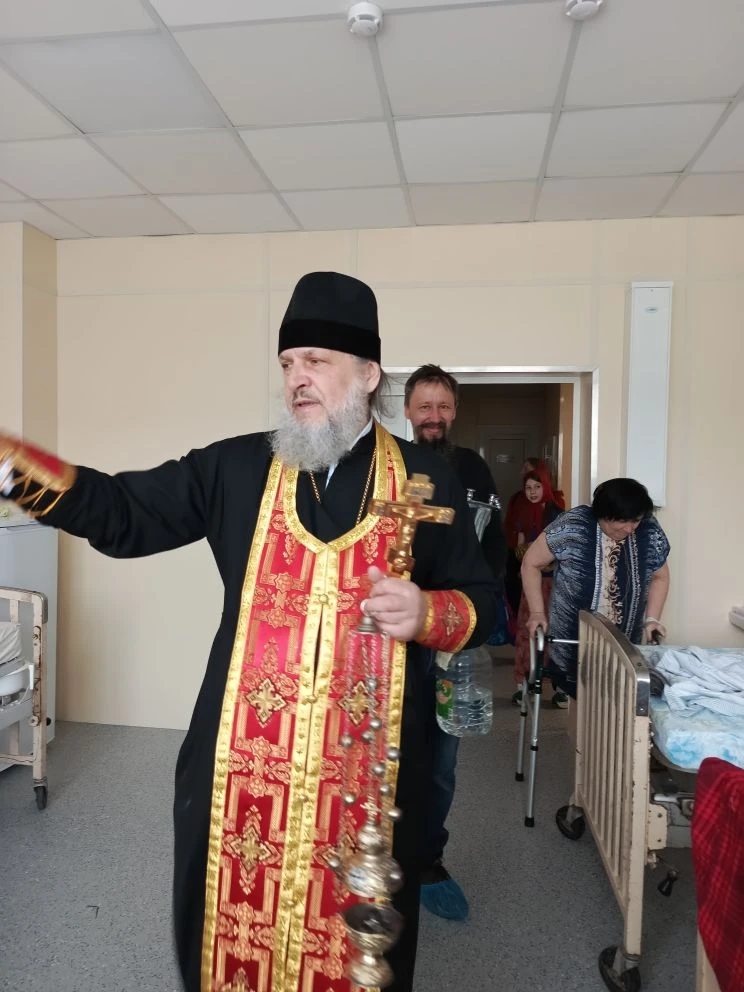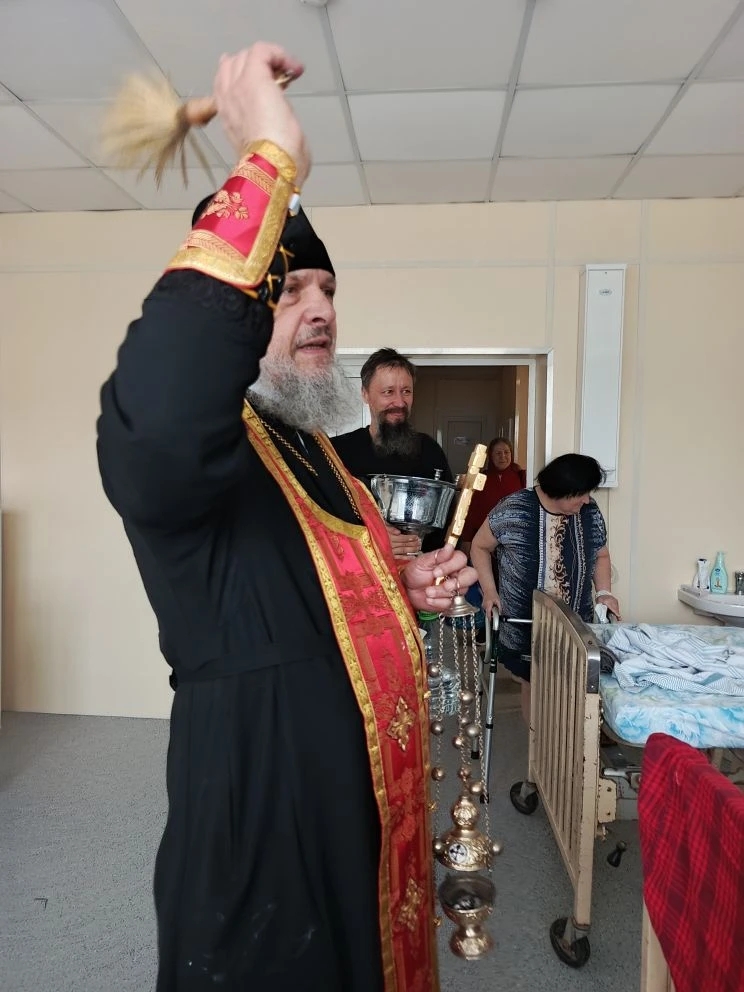 В Светлую седмицу клирик епархии протоиерей Александр Талько вместе с группой добровольцев и сёстрами милосердия посетил Тысячекоечную больницу.